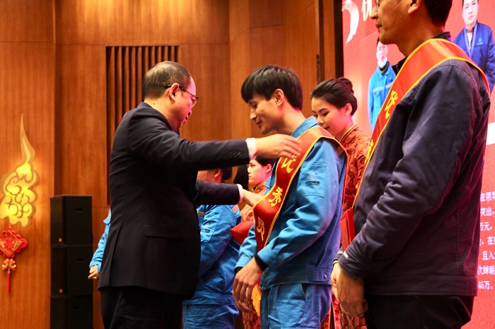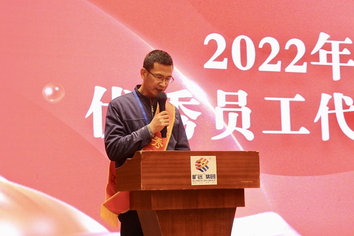 表彰先進(jìn),激勵奮發(fā)。企業(yè)的每一份收獲背后都凝聚著全體曠遠(yuǎn)人的努力與汗水。在2022年各方面工作中,涌現(xiàn)出一批表現(xiàn)突出的優(yōu)秀員工,為企業(yè)發(fā)展做出了積極貢獻(xiàn)。優(yōu)秀員工表彰現(xiàn)場,由集團(tuán)董事長王子林對2022年度優(yōu)秀員工(周燦生、鄭劍光、邱琳玉、黃振彬、鄭葆珍)進(jìn)行表彰,給予證書、綬帶、獎金。隨后,周燦生代表全體優(yōu)秀員工進(jìn)行發(fā)言,他說榮譽(yù)是鞭策進(jìn)步的動力,我們將不斷提升自我,與企業(yè)共呼吸、共命運(yùn)。