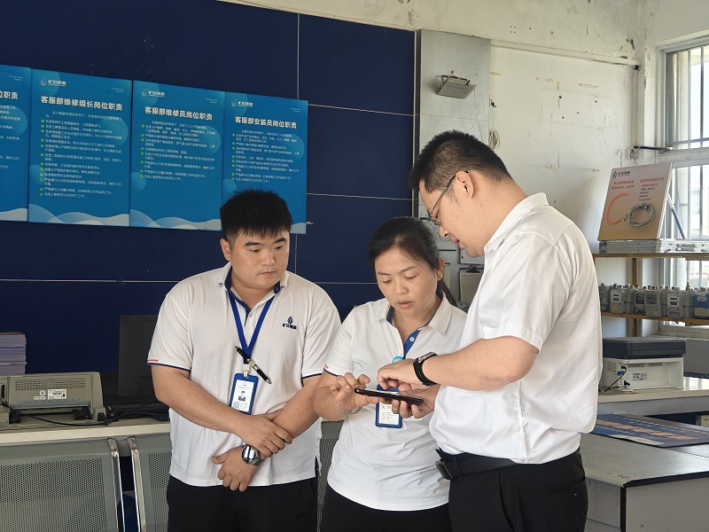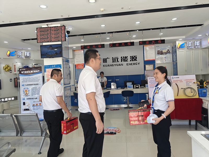 高溫持續“烤”驗下,燃氣一線員工的工作狀態與安全備受關注。2025年9月12日,曠遠能源副總裁兼燃氣事業部總經理柯軍、曠遠能源運營管理中心總監焦鵬利用“四不二直”深入基層,開展安全檢查及高溫慰問,走訪涵江營業廳、涵西加氣站等一線部門,以“聚焦安全筑防線、精準施策解難題”為核心,將高溫關懷轉化為切實行動。