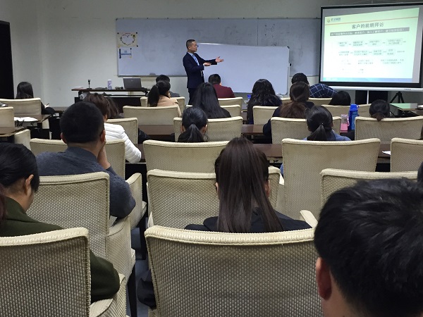 隨后,市場開發(fā)中心總經(jīng)理李大勇以分享經(jīng)驗為切入點,開始了當(dāng)天的課程,課程共分兩大模塊:一、如何拜訪客戶;二、實用商務(wù)禮儀分享。