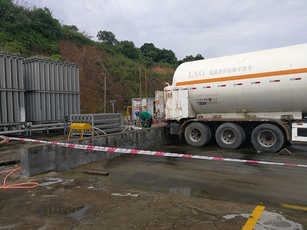 當天上午9時許,鯉南站值班人員在巡回檢查時發現出液法蘭連接處出現LNG泄漏,立即報告站長吳劍飛。吳站長現場查看后,發現該泄漏較大,疑法蘭連接墊片老化導致,需馬上進行更換,隨即組織值班人員進行搶修,安排氣化員關閉槽車出液閥門,停止LNG供應,切換至CNG進行保供運行;同時對氣化生產區域進行警戒,待LNG出液軟管內的LNG充分氣化后,進行泄壓排空放散,出液軟管化冰后,再進行修復更換法蘭墊片。搶修完成后,相關人員進行氣密性試驗,檢測螺栓是否牢固,合格后立即恢復LNG供氣。