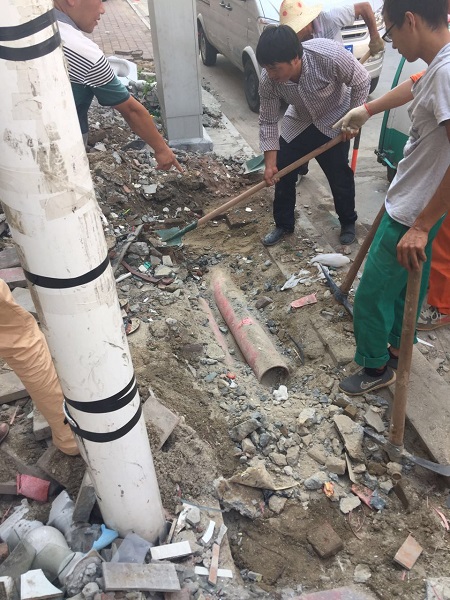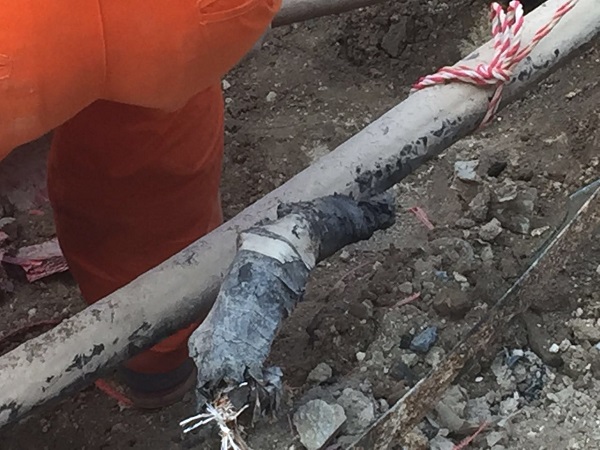 2017年7月15日上午8點(diǎn)39分,曠遠(yuǎn)能源管網(wǎng)部巡線員謝海陽(yáng)在對(duì)華林工業(yè)園區(qū)支四路巡線過(guò)程中,發(fā)現(xiàn)空氣中彌漫著一股臭味,多年從業(yè)經(jīng)驗(yàn)使他立刻引起警覺,通過(guò)手持式可燃?xì)怏w檢漏儀確定了該區(qū)段存在燃?xì)庑孤K⒓磳?duì)現(xiàn)場(chǎng)進(jìn)行警戒,并及時(shí)上報(bào)管網(wǎng)部經(jīng)理林元琦。林元琦考慮事故隱患重大,影響范圍廣,立即上報(bào)公司領(lǐng)導(dǎo)并啟動(dòng)應(yīng)急預(yù)案。曠遠(yuǎn)能源客服部、調(diào)度監(jiān)控中心、工程管理中心、宏盛市政工程有限公司等多方迅速聯(lián)動(dòng)。管網(wǎng)部經(jīng)理林元琦第一時(shí)間組織力量趕赴現(xiàn)場(chǎng)處理,他憑借多年的管網(wǎng)應(yīng)急處理經(jīng)驗(yàn),迅速鎖定漏氣區(qū)段,通過(guò)取點(diǎn)檢測(cè)分析,準(zhǔn)確地找出了管線漏點(diǎn)。頂著烈日冒著酷暑,為了及時(shí)恢復(fù)供氣,曠遠(yuǎn)能源管網(wǎng)部和宏盛市政的應(yīng)急搶修人員爭(zhēng)分奪秒進(jìn)行搶修。當(dāng)天下午17點(diǎn)18分,更換管段焊接完畢;17點(diǎn)58分,冷卻側(cè)漏后恢復(fù)供氣。