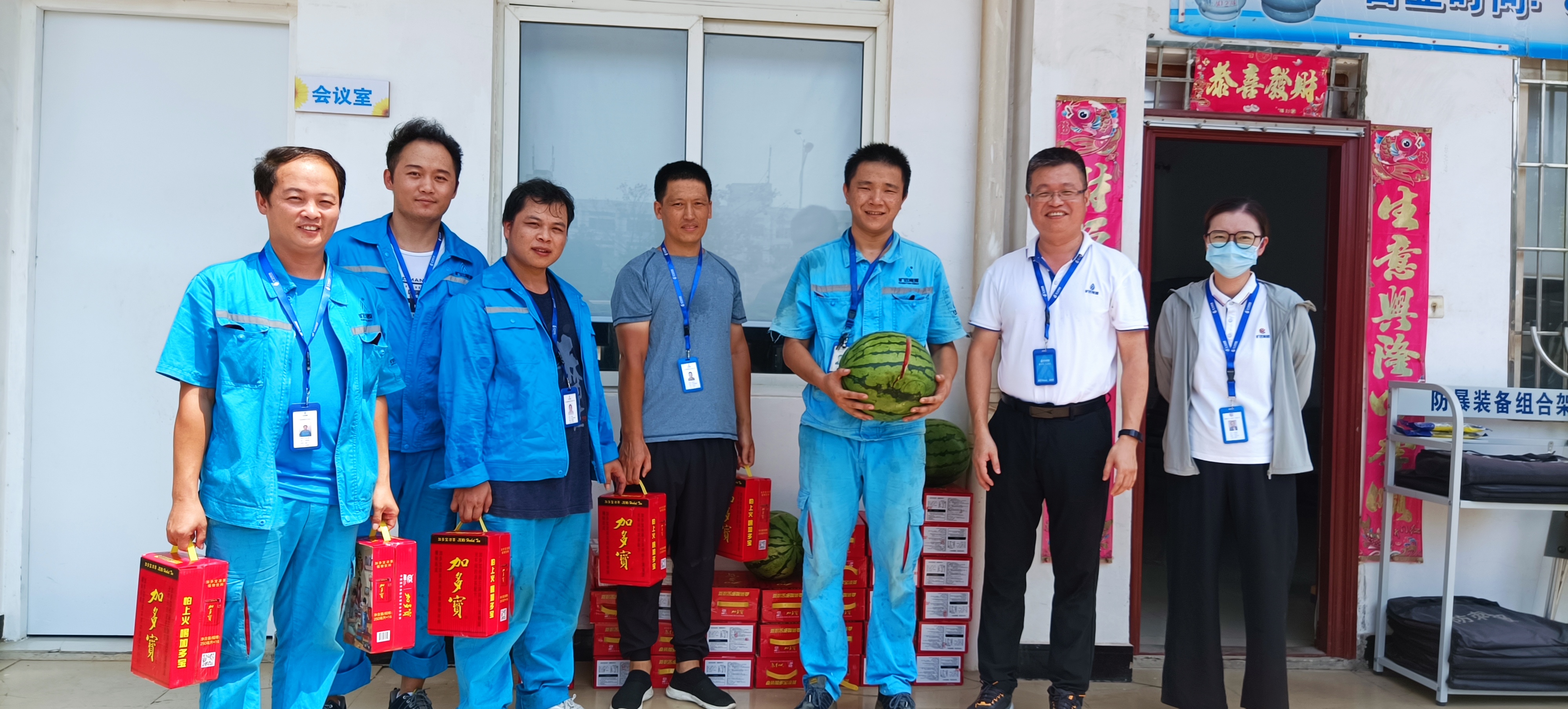 “處暑”雖至,炎熱依然,8月23日,曠遠能源股份有限公司工會組織開展“炎夏送清涼”慰問活動,在工會主席曾智偉的帶領下,慰問團一行來到一線,慰問高溫作業員工,并為他們送上西瓜、加多寶等物資,送去夏日里的一抹清涼,也送去公司的一片關心。每到一處,曾主席都對堅守在高溫崗位的一線員工表示感謝,并叮囑大家在做好工作的同時,一定要注意防暑降溫,注重身心健康。同時把防暑降溫物資送到大家手中,讓大家..